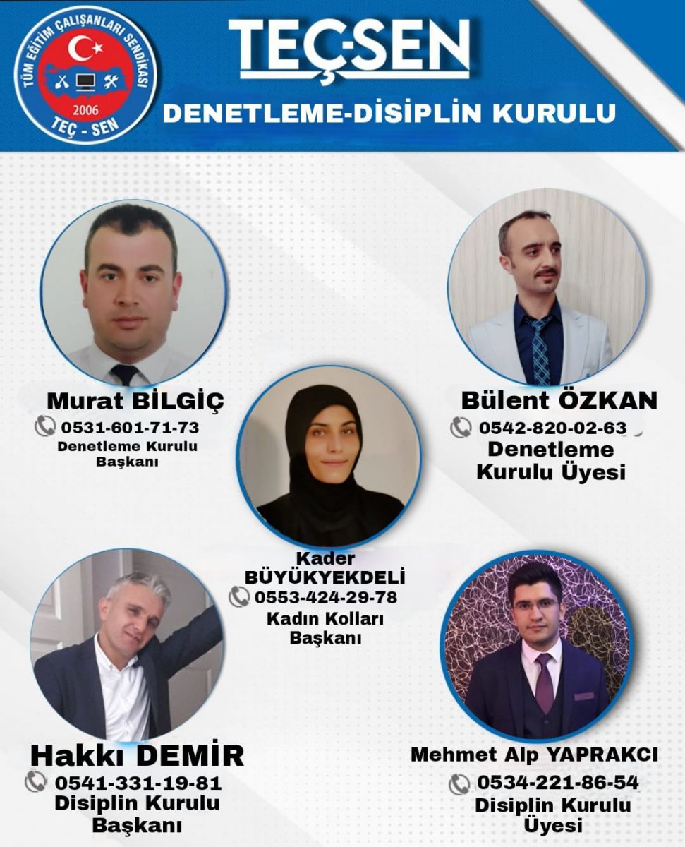 2006 yılında kurulan TEÇ-SEN'in başlıca felsefesi siyaset ile sendikal faaliyetlerin ayrı tutulması, TEÇ-SEN İlçe Başkanı Fahrettin YORGANCILAR tüm eğitim çalışanlarını sendikamiza üye olmaya davet ediyoruz, her eğitim çalışını eğitimin bir neferidir, her eğitim çalışanı birer değerdir, sendikamıza üye olmaları bizim için bir onurdur şeklinde açıklarmada bulundu.