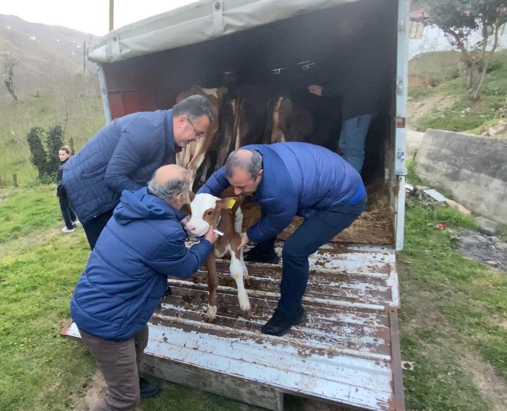 Türkmen ailesinin mağduriyetinin giderilmesi için anında talimat veren Vali Sonel, heyelanın hemen ardından yeniden alınarak aileye teslim edilmek üzere yola çıkan buzağıları ile birlikte 3 büyükbaş hayvanı ve bir adet köpeği teslim ederek yaşlı çiftin sevincine ortak oldu.