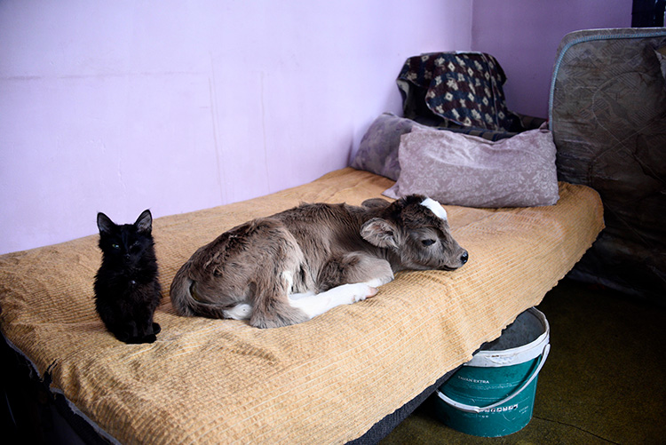 "Buzağılar yattığında ben yanlarına gidiyorum, ben yattığımda onlar yanıma gelip yatıyor. Arada yatağa kaçırıyorlar, o zamanlar bezliyoruz. Çok seviyorum onları, bir yere gittiğimde aklım hep burada kalıyor. Vakit kaybetmeden eve geri geliyoruz. Yıllar önce köyün dışındaki bir eve taşındık. Köyden uzak olunca arkadaşım da kalmadı. Buzağılar doğunca benim arkadaşım oldu. Onlarla dertleşiyorum."