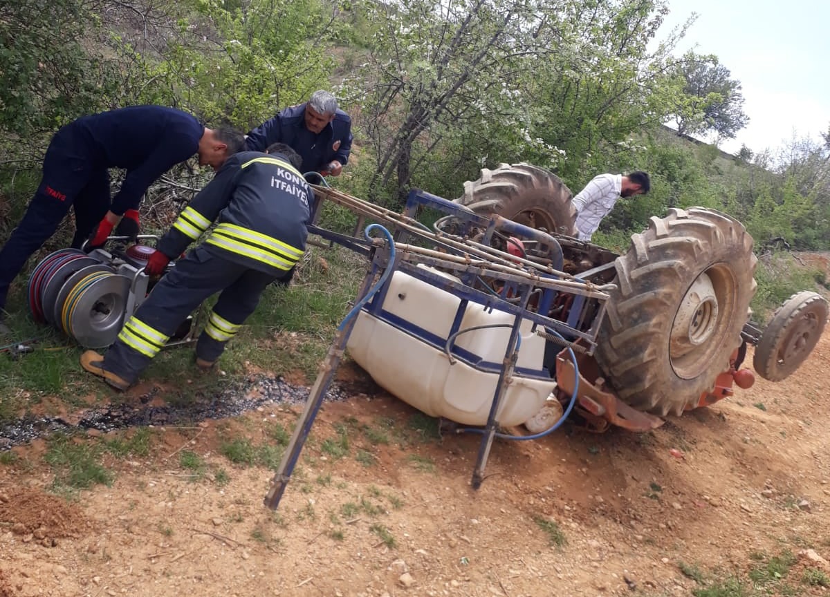 Devrilen traktörün altında kalan Acar’ın kurtarılması için olay yerine itfaiye ve sağlık ekipleri sevk edildi.