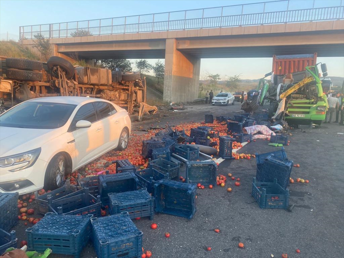 Tarsus-Adana-Gaziantep (TAG) Otoyolu'nun Damlama mevkisinde 42 YZ 919 plakalı tır, 01 BHJ 59 plakalı domates yüklü kamyon ve 42 AEC 325 plakalı tır çarpıştı.