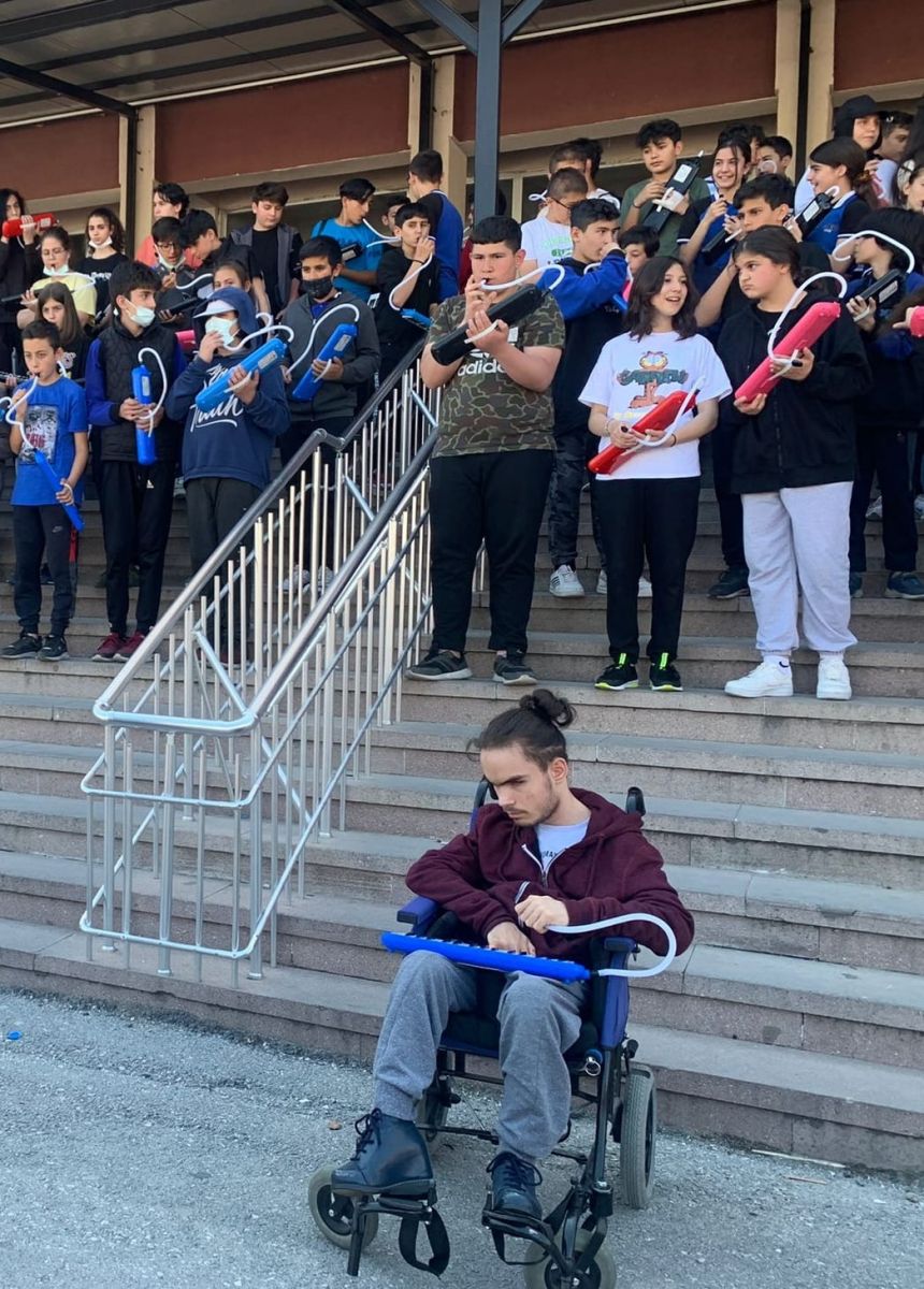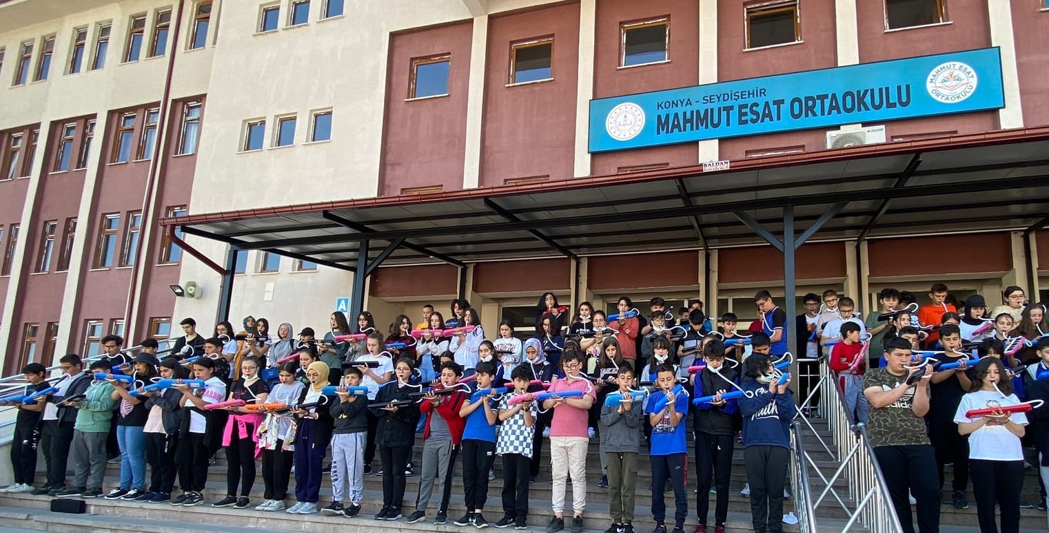 Mahmut Esat Ortaokulu’nda farklı sınıflardan 150 öğrenci Müzik öğretmeni Levent Gökçen yönetiminde bir araya gelerek aynı anda “Köyümüz” adlı şarkıyı başarıyla, hatasız bir şekilde çaldılar. Yaklaşık üç aylık bir çalışmayla tek bir nefes gibi bir şarkıyı seslendiren öğrencilerden görme engelli Eren Can Çağlar, evde eğitim aldığını, bu tür etkinliklerin içinde bulunmanın kendisini okula ve sosyal hayata adapte ettiğini söyledi. Müzik öğretmeni Levent Gökçen ise:” Amacımız hem bu kadar öğrenciyle aynı müzik notalarını beraberce seslendirmek hem de birlik beraberlik ruhu oluşturmaktı. Melodika çalan çalmayan yaklaşık 1300 öğrencimizi tek hedef etrafında toplamak da ayrı bir güzellikti.” dedi.