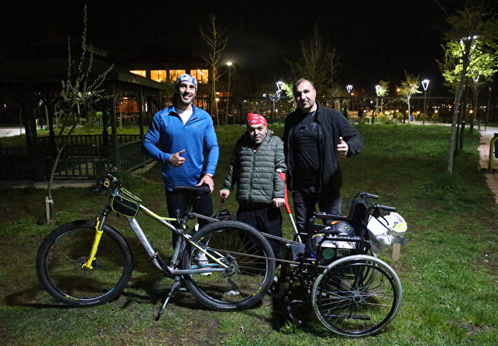 Gencer'in kabul etmesi üzerine tekerlekli sandalyeyi sanayiye götürerek demir çubuk ve kelepçelerle bisikletin arkasına monte ettiren 30 yaşındaki Bozdemir, arkadaşıyla yolculuk hazırlığına başladı.
