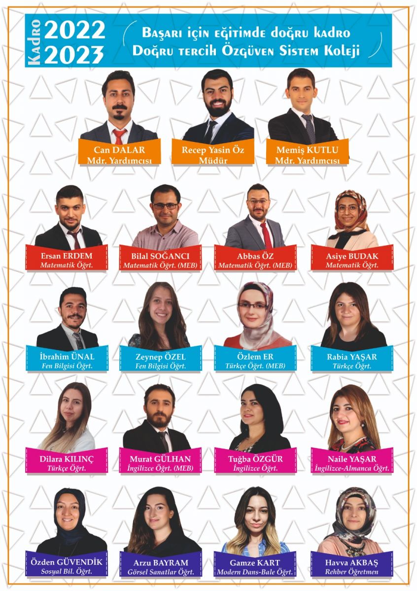 Yıl içerisinde yapılan il ve ilçe geneli sınavlarda üst sıralarda yer alan Özgüven Sistem Koleji öğrencileri hız kesmeden yoğun tempoda çalışmaya devam ediyor. Okul yönetimi tarafından sınav öğrencileri yıl boyunca yakından takip ediliyor.