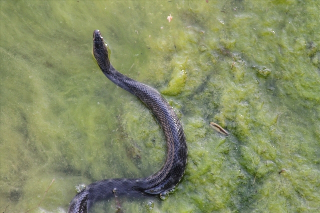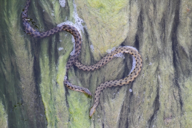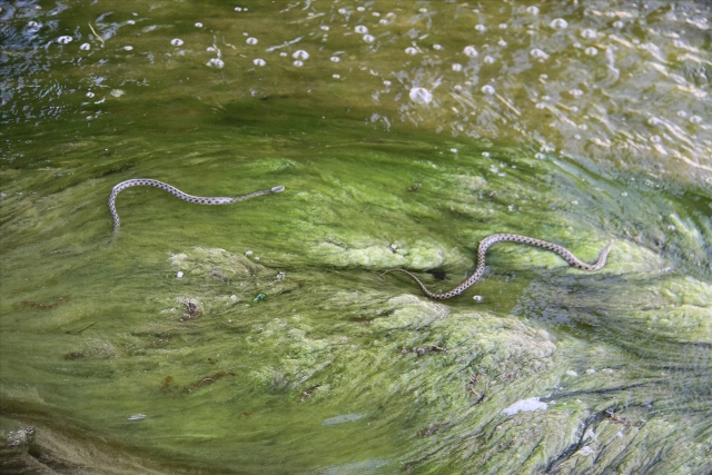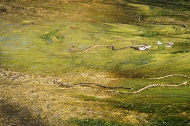Tekrar göle dönmek için akıntıya karşı yüzen yılanların mücadelesi ilginç görüntüler sergiliyor.