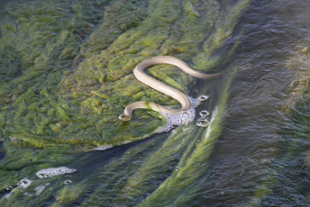 Yaşam sürdükleri Beyşehir Gölü'nden akıntıyla Beyşehir Suğla Apa (BSA) kanalına geçen çok sayıda su yılanı mahsur kaldı.