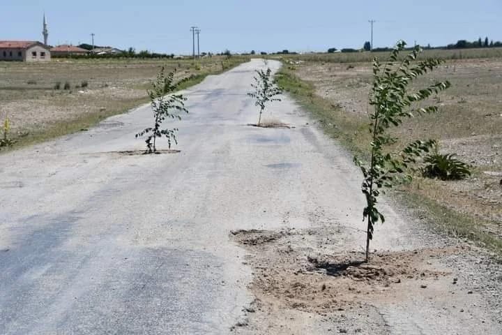 Aksaray’ın Eskil ilçesinde görenleri şaşkına çeviren bir olay yaşandı. Eskil ile Kaputaş başta olmak üzere bir çok yaylayı bağlayan yoldaki çukurlara ağaç ekildiğini görenler gözlerine inanamadı. Ağaçları çukurlara dikenlerin kim ya da kimler olduğu bilinmiyor. Ancak, bölge halkının daha önce yolun çukurlarla dolu hale gelmesine tepki gösterdiği ve yetkililerden yardım istediği bildiriliyor. Vatandaşların, Eskil ilçesiyle Kaputaş, Sülüklü, Emirhacı ve Çetehasan Yaylalarını birbirine bağlayan yolun genişletilerek yeniden yapılmasını istediğini kaydediliyor.