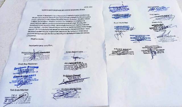 Çarşı Esnafından yapılan ortak açıklamada "Konya İli Seydişehir ilçesi Hacı Seyitali Mahallesi Çarşı meydanında devam eden Seyyid Harun projesi kapsamında yaklaşık 5 yıldır süre gelen yapım çalışmalarından dolayı biz altta imzası bulunan esnaflar olarak mağdur durumdayız .