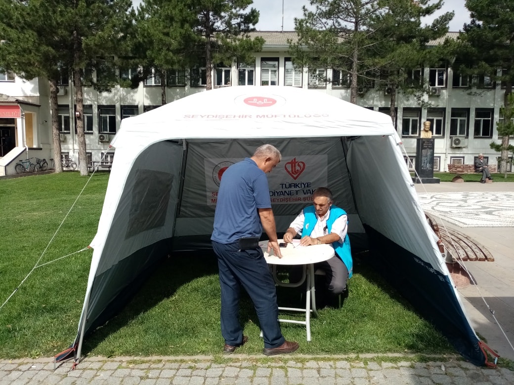 2022 yılında Diyanet İşleri Başkanlığımız ve Türkiye Diyanet Vakfımız işbirliğiyle Vekaletle Kurban Kesim Organizasyonunu tanıtmak ve bağış yapmak isteyen vatandaşlarımıza yardımcı olmak amacıyla Türkiye Diyanet Vakfı Seydişehir Şubemiz tarafından Hükümet Konağı önünde Vekaletle Kurban Kesimi tanıtım ve bağış kabul çadırı kuruldu.