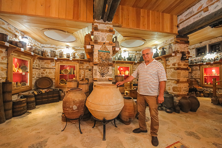 Antalya'nın Akseki ilçesinde atalarından kalan eşyaları biriktiren turizmci Mustafa Kavasoğlu, oluşturduğu müzede aralarında müzik enstrümanları, saat, radyo, küp, beşik ve kıyafetlerin de bulunduğu 6 bin parçayı sergiliyor.