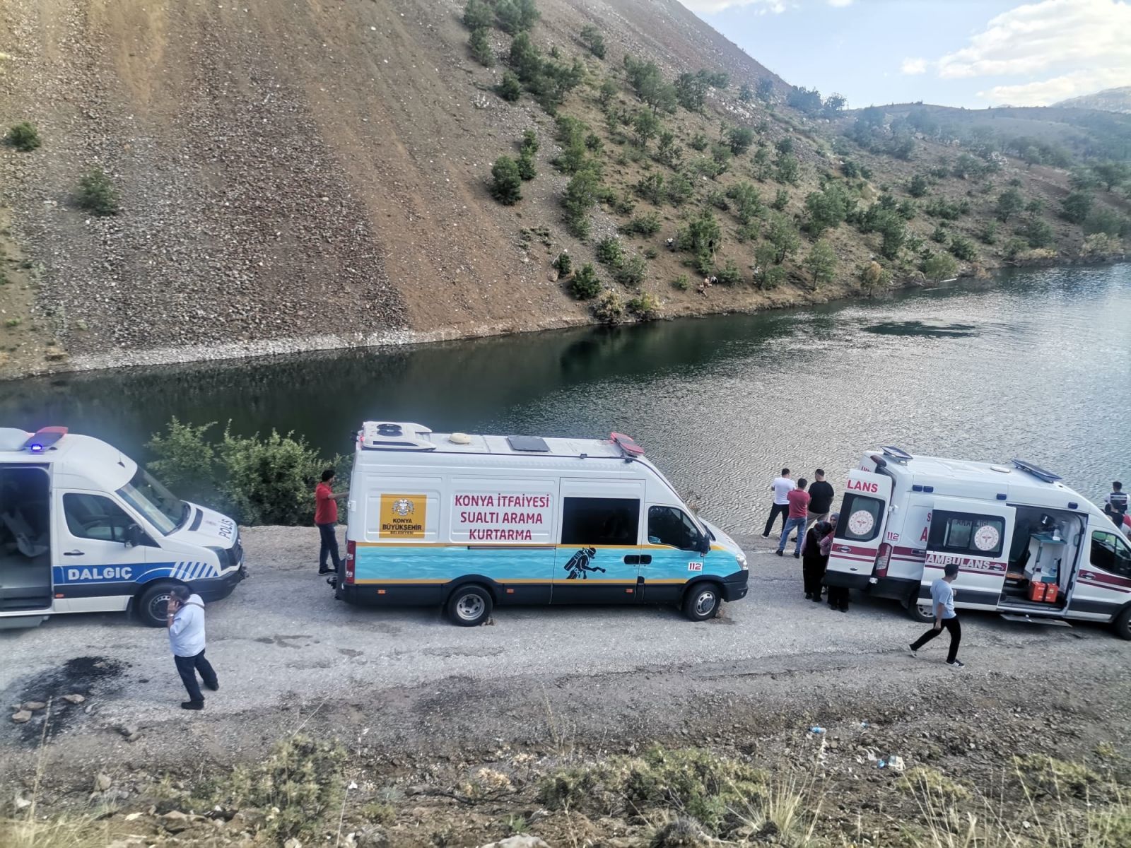 İhbarla olay yerine Konya Büyükşehir Belediyesi İtfaiye Daire Başkanlığı Su Altı Arama Kurtarma Dalgıçları ile Konya İl Emniyet Müdürlüğü Polis Dalgıç ekibi geldi.