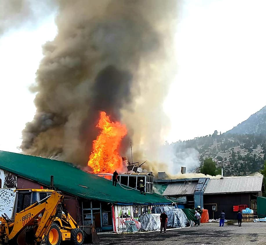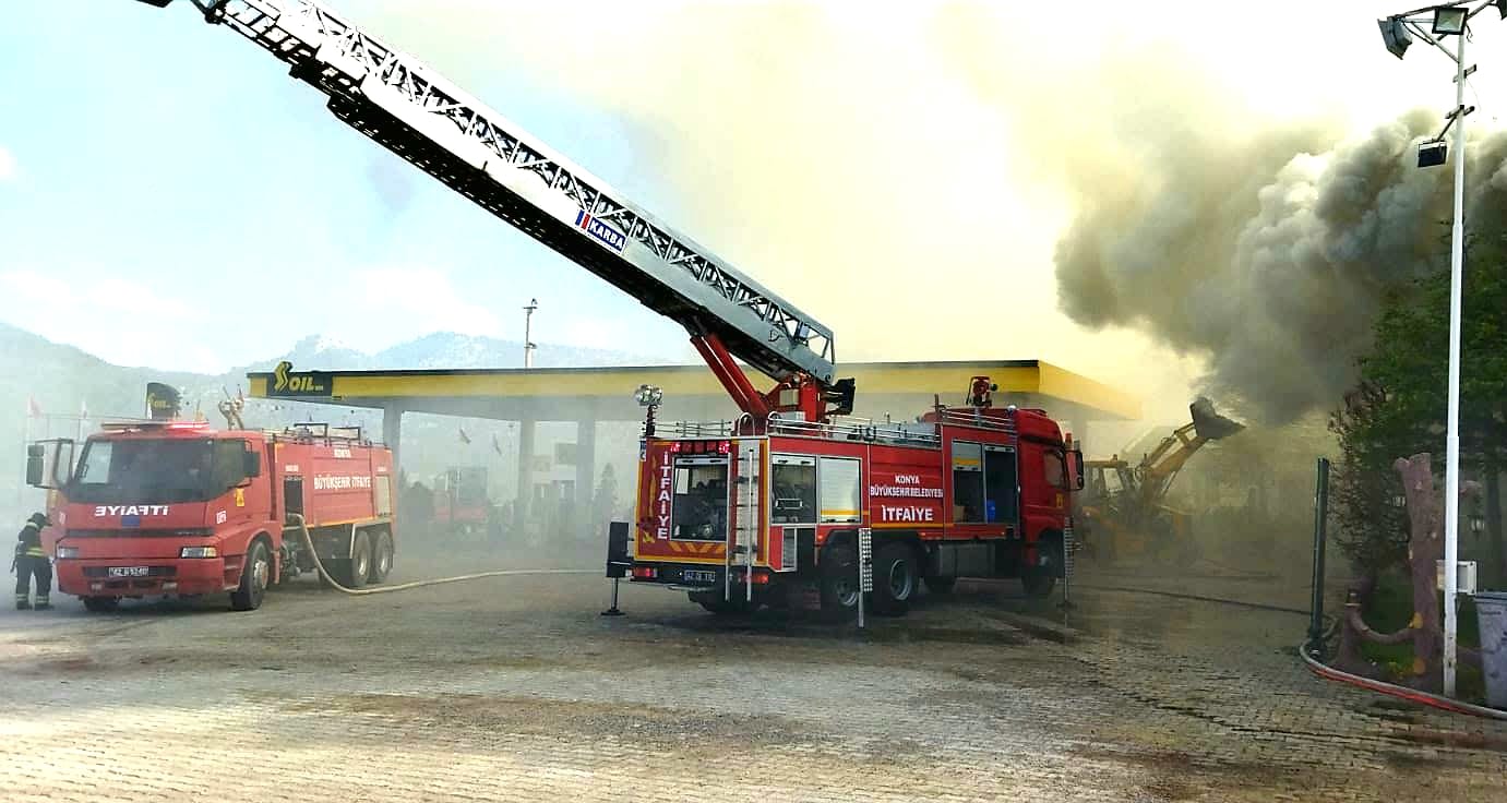 Konya'nın Seydişehir bir akaryakıt istasyonunun hemen yanında bulunan dinlenme tesisi, çıkan yangın sonrası alevlere teslim oldu. Facianın eşiğinden dönülen yangında, alevler akaryakıt istasyonuna sıçramadan söndürüldü.