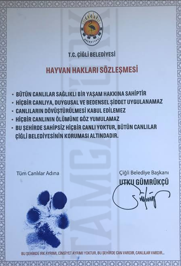 Bu şehirde sahipsiz hiçbir canlı yoktur, bütün canlılar Çiğli Belediyesi'nin koruması altındadır