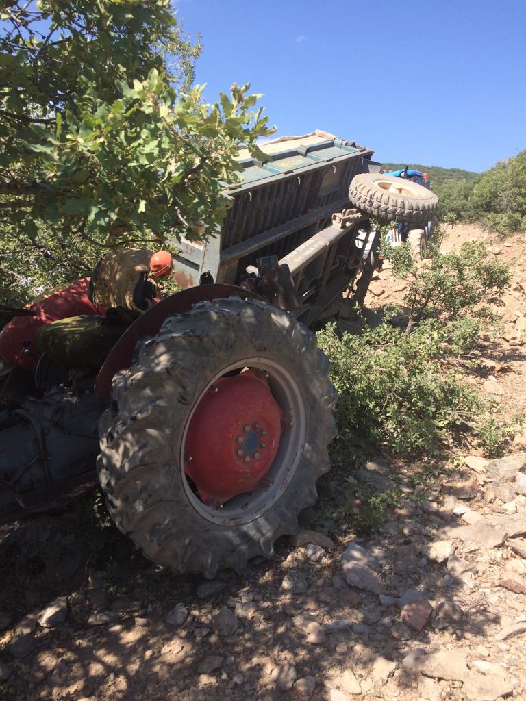 Kazada sürücü ile traktör de bulunan eşi Fadim Tekin yaralandı.