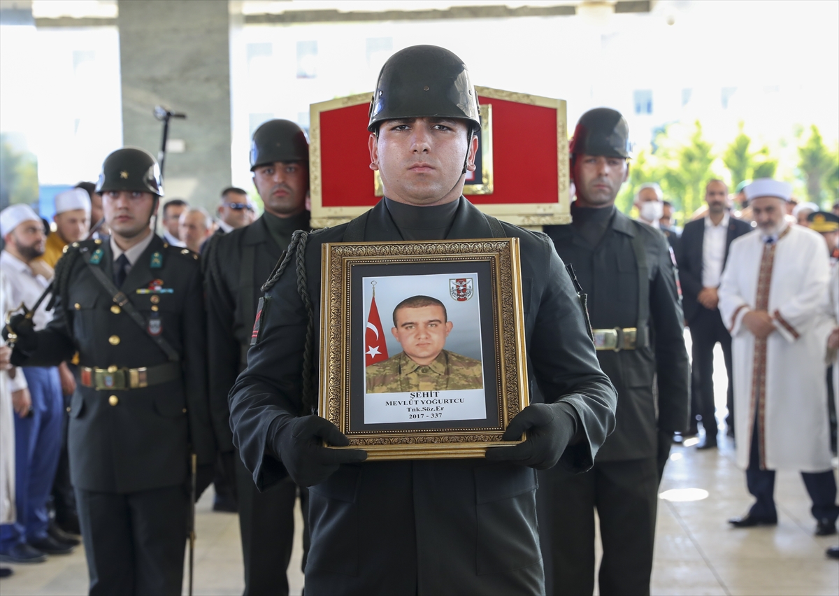 ANKARA (AA) - Fırat Kalkanı Harekat bölgesinde teröristlerce açılan taciz ateşi sonucu yaralanan ve kaldırıldığı hastanede şehit olan Tank Sözleşmeli Er Mevlüt Yoğurtcu (28) son yolculuğuna uğurlandı.