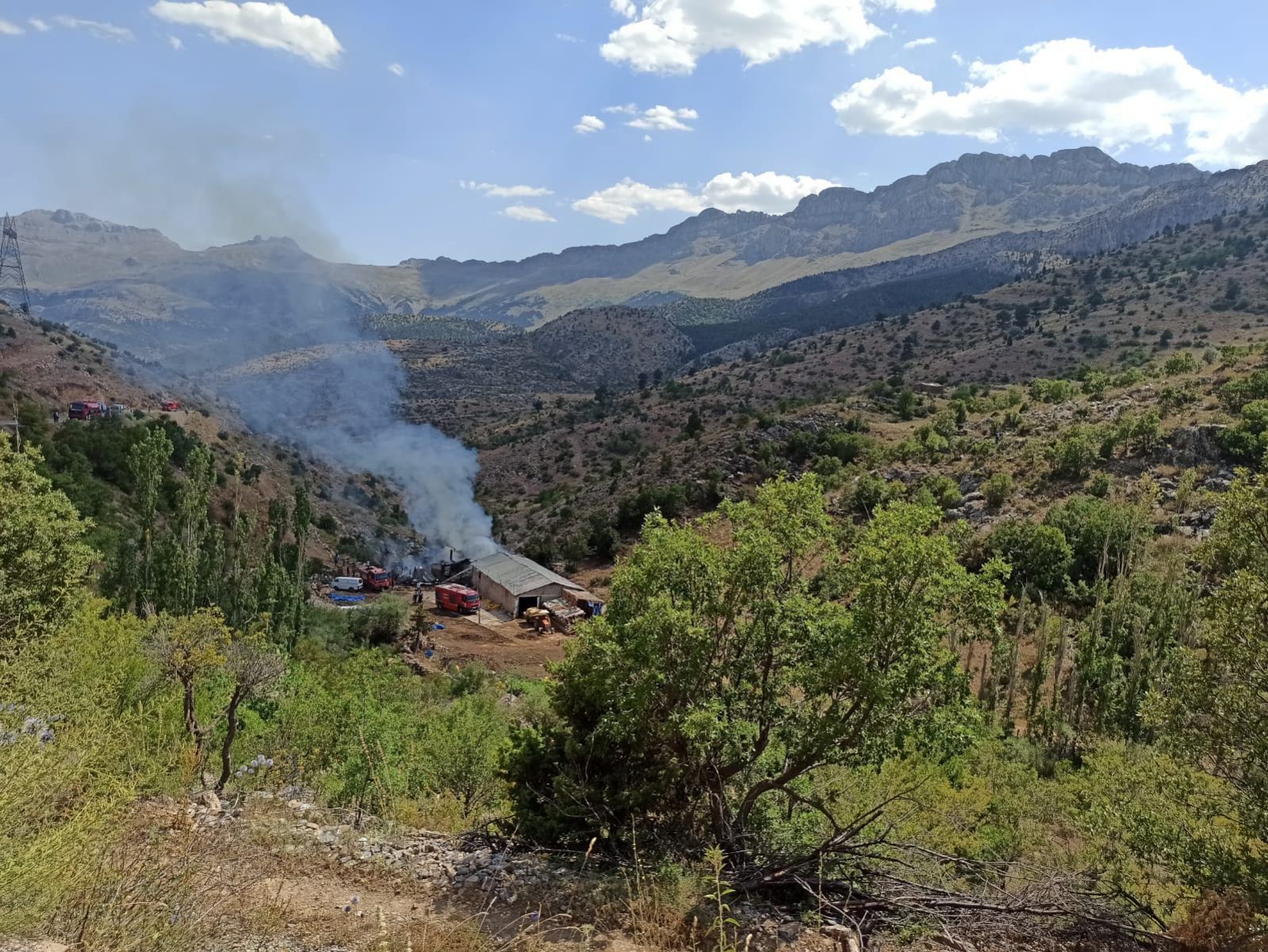 Edinilen bilğiye Taraçı Mahallesi Reze Beli yolunda Abdullah Ustaoğluna ait Besi damında henüz bilinemeyen nedenle yangın çıktı.