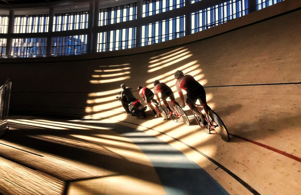 Açılışı 7 Ağustos'ta yapılacak veledromda Bisiklet Milli Takımı sporcuları Doğukan Arıkan, Oğuzhan Tiryaki, Feritcan Şamlı ve Azize Bekar, Milli Takım Antrenörü Mutlu Erçevik eşliğinde piste çıktı.