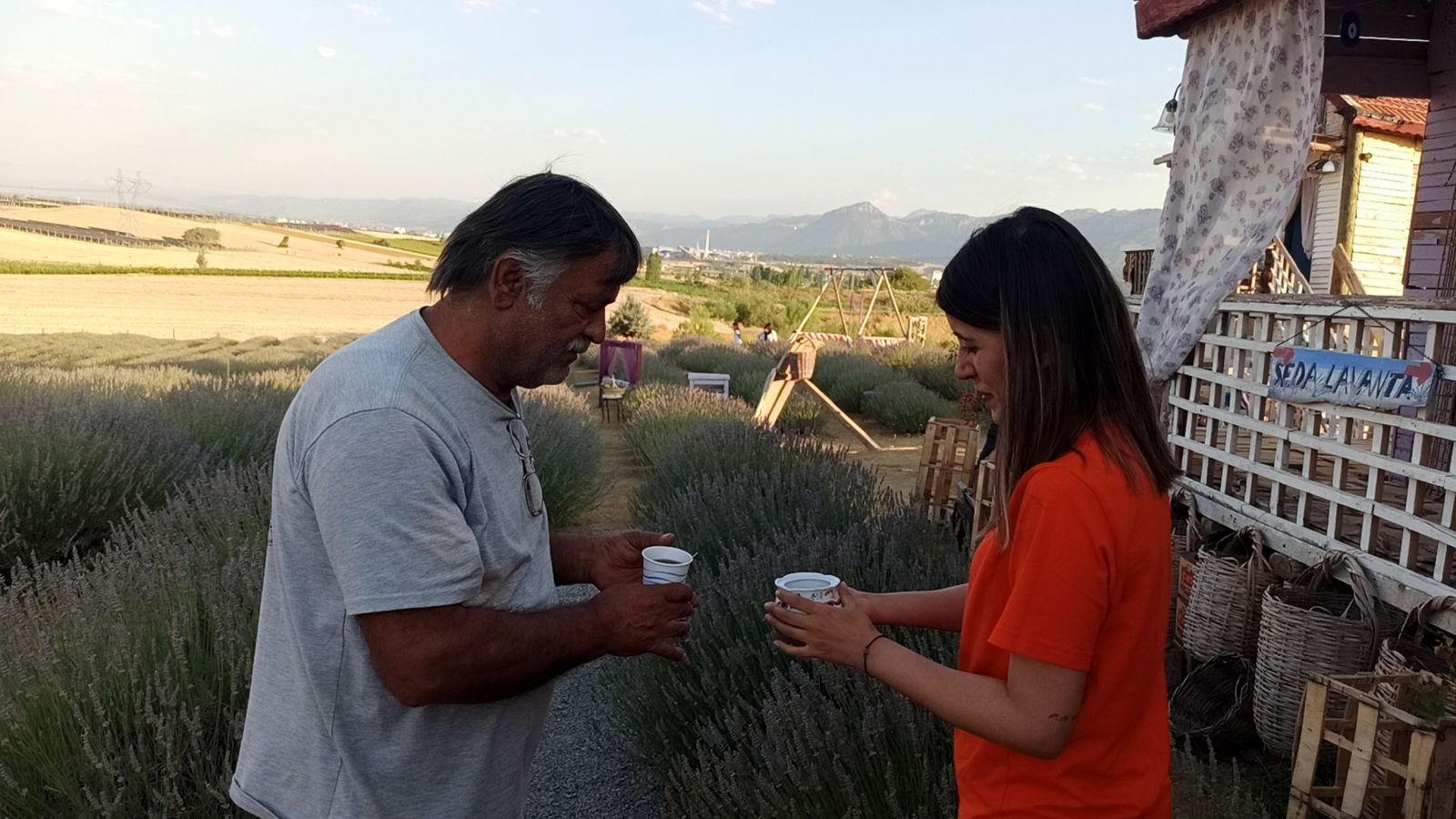 Bölgenin özellikle düğün yapan gelin ve damatların uğrak yerine gelen ve babasının adını verdiği lavanta bahçesini ziyaret eden Seda Nur bahçeyi ziyarete gelenleri hem karşılayıp hem de ikramlarda bulundu.