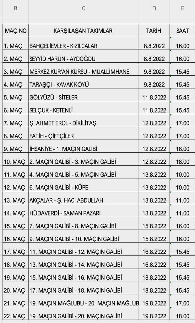 22 Takımın Mücadele edecegi Futbol Turnuvası Seydişehir Atatürk Kapalı Spor salonu yanındaki çim sahada eleminasyon sitemi ile yapıalcak.