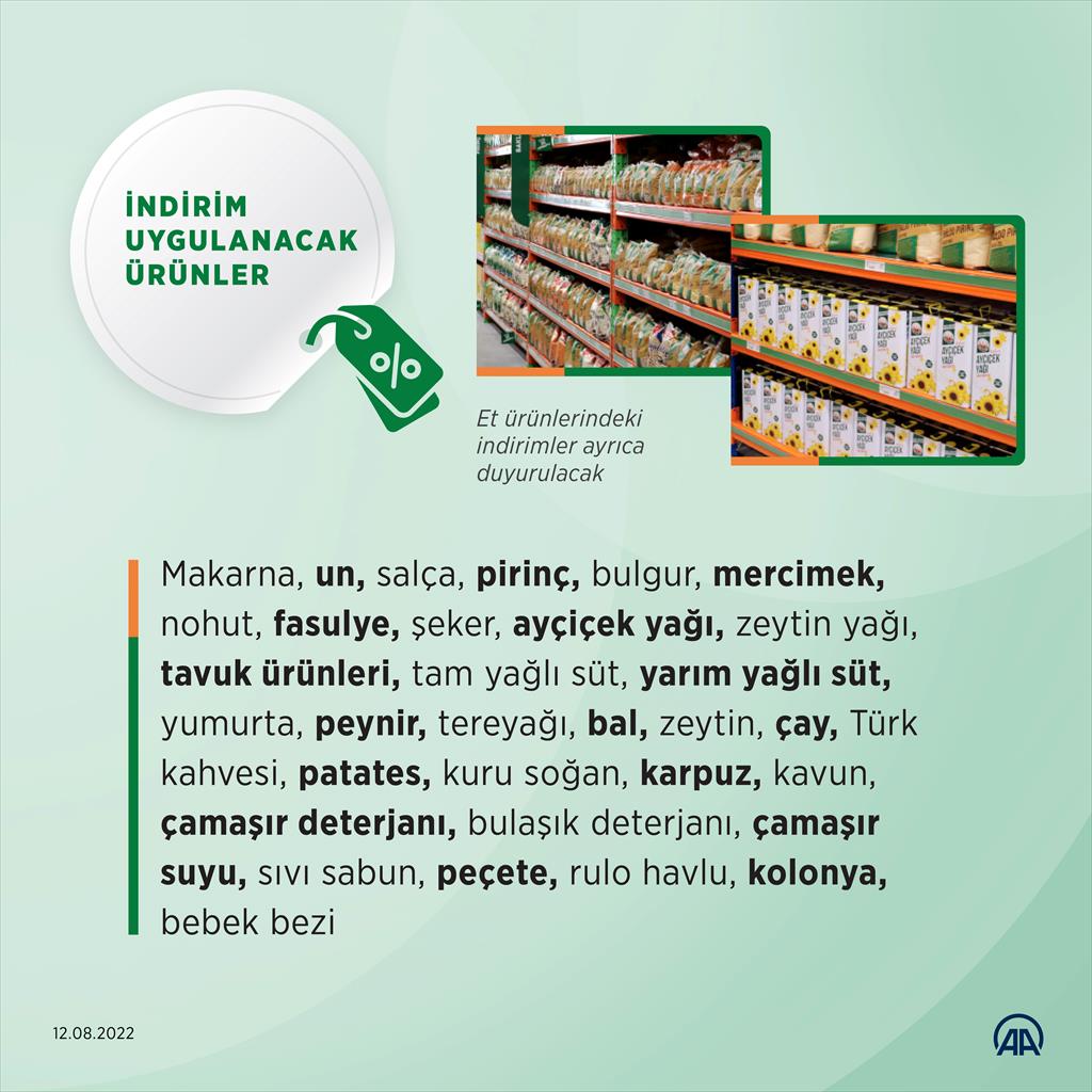 Cumhurbaşkanı Recep Tayyip Erdoğan'ın talimatıyla enflasyonla mücadele kapsamında temel tüketim ve et ürünlerinde kapsamlı bir indirim kampanyası başlatılıyor.