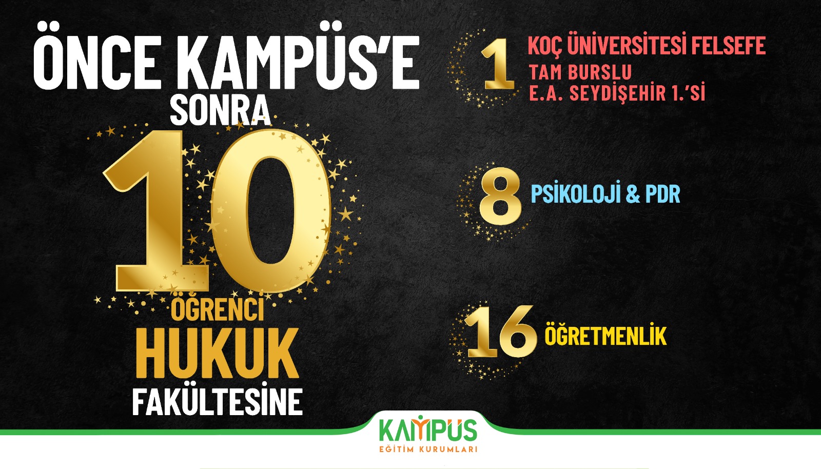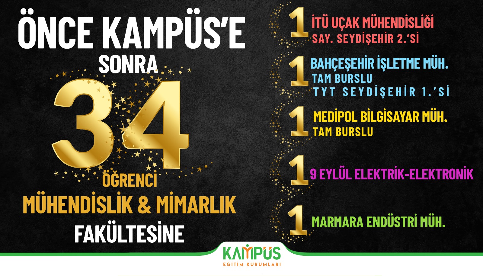 2022 Üniversite yerleştirme sonuçları açıklandı. Her yıl olduğu gibi 2022’de de Kampüs Eğitim Kurumları başarısıyla yine adından söz ettirdi. TYT Seydişehir 1.si/ Türkiye 888.si Elif YALÇIN, Bahçeşehir Üniversitesi İşletme Mühendisliğini (Tam Burslu) tercih etti. Yine Eşit Ağırlık Seydişehir 1.si /Türkiye 859.su Sezin KOYUNCUOĞLU Koç Üniversitesi Felsefe (Tam Burslu) bölümünü tercih etti. Kampüs Okullarından Şevval ILGIN ve Kıvanç KAŞ 9 Eylül Üniversitesi Tıp Fakültesi, Halime ÖTEL Süleyman Demirel Ünv. Tıp Fakültesi, Yunus Emre BOĞA Çanakkale 18 Mart Ünv . Tıp Fakültesi, Ahmet DEĞİRMENÖNÜ Kafkas Ünv. Tıp Fakültesini kazandılar.