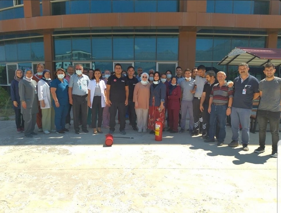Eğitim sonrasında eğitimcilerin organizasyonu ve hastane personellenin katılımıyla Deprem Anı Uygulaması, Tahliye Tatbikatı, Toplanma Alanı Uygulaması ve Yangın Tatbikatları yapıldı.