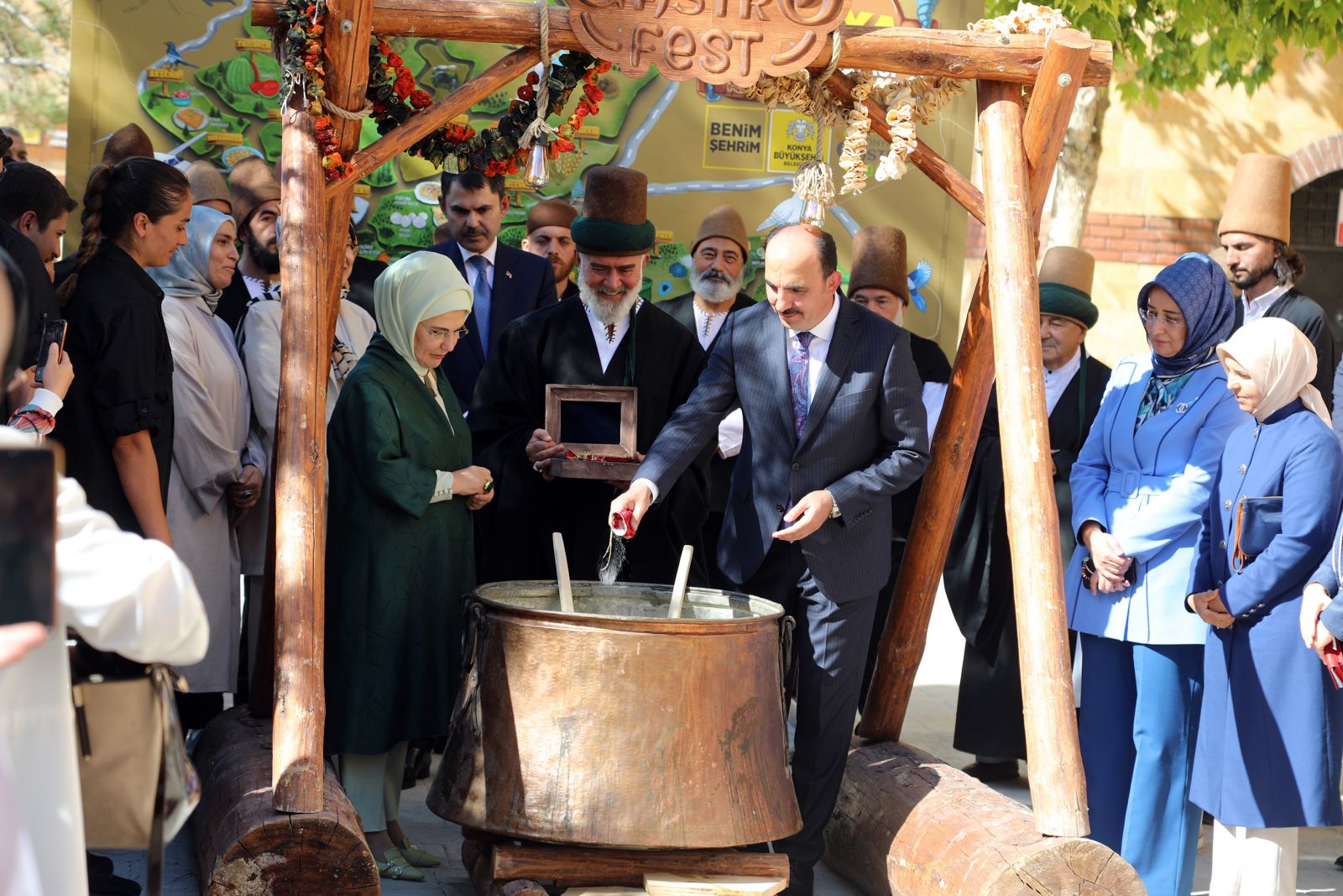 Emine Erdoğan, Konya Büyükşehir Belediyesince Ecdat Bahçesi'nde düzenlenen ve üç gün sürecek "Konya GastroFest" adlı festivalin açılış töreninde, her coğrafyanın, her şehrin, kendine ait bir karakteri bulunduğunu, Konya'nın da Anadolu’nun özünü ruhunda yaşatan son derece özel bir yer olduğunu dile getirdi.