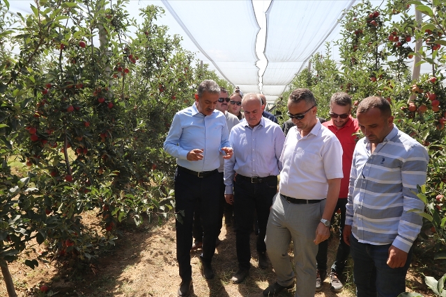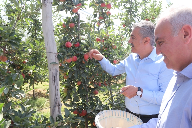 "200 bin ton soğuk hava kapasitemiz bulunuyor. İçinde bulunduğumuz bahçe çok modern bir bahçe. Avrupa'nın en büyük tek parça elma bahçesi. Ben buranın yetkililerine teşekkür ediyorum. Burada dikkat çeken bahçe yapılmadan toprak ıslahı, doğru yöntem, doğru fidan, doğru bakımla kalite ve verimin alınabilmesi. Bizim dünyayla rekabet edebilmemiz için bilimsel yöntemleri kullanmamız gerekiyor. Bu işletmede ve Karaman'da üretilen elmalar yaklaşık 40 ülkeye ihraç ediliyor. Her zaman çiftçilerimizin yanındayız. Bunu fiili olarak da göstermek için bu elma hasadına katılıp onların sevincine ortak olduk."