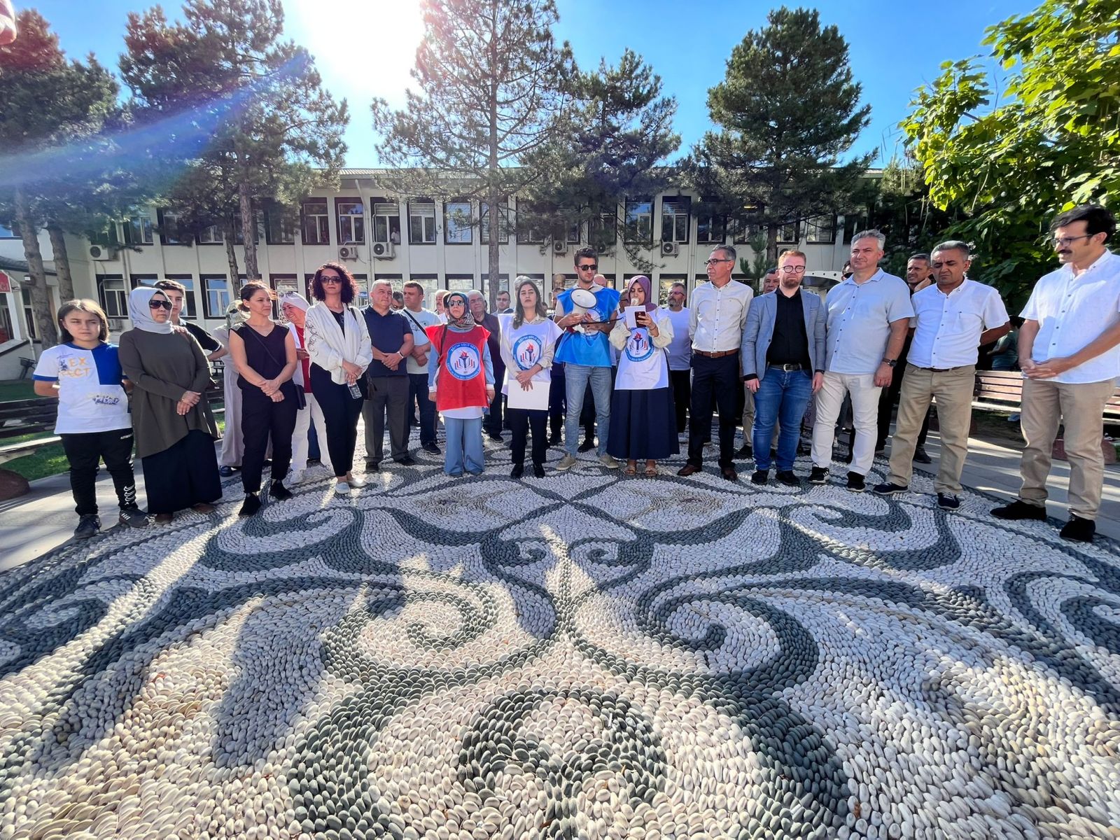 Bugün burada ilçemiz Mahmut Esat Ortaokulunun usul ve mevzuat gözetilmeden halk eğitim merkezine tahsis edilen mevcut ek binanın taleplere rağmen bir türlü okula verilmemesine dönük yaşanan sorunları ve taleplerimizi dile getirmek için toplandık.