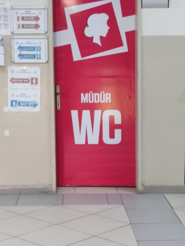 Çok sayıda kullanıcı tarafından yorum yapılan fotoğrafta, tuvaletin kapısında renkli bir tasarımın üzerine "Müdür WC" yazılması dikkat çekti.