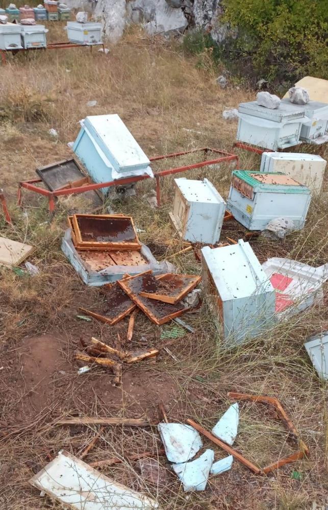 Yapılan incelemede kovanların ayılar tarafından parçalandığı anlaşıldı.