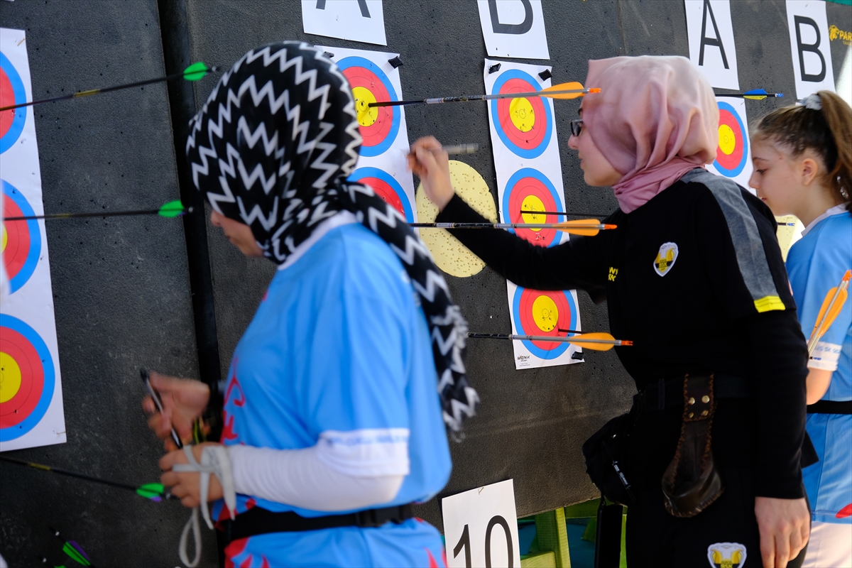 Zeki Altındağ İlkokulu'nda bulunan Şehit Mustafa Çizmeci Spor Salonu'nda yapılan turnuvada okçular, hedefi on ikiden vurmak için tüm hünerlerini sergiledi.