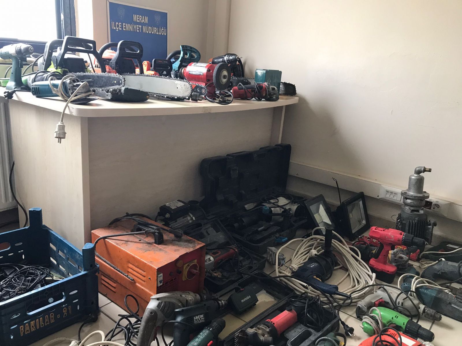 Polis ekiplerince herhangi bir tabelası olmayan ve depo olarak kullanılan adrese yapılan baskında, bağ evleri ve iş yerlerinden çalındığı düşünülen 10 adet Elektronik Testere, 15 adet Matkap, 2 adet Su Motoru, 1 adet Duvar Kırıcı, 1 adet Kaynak Makinesi, 5 adet Elektrikli Vidalama, 4 adet Flex, 2 adet Projektör ve çeşitli elektronik malzemeler olmak üzere toplamda 50 parça hırsızlık malı eşyaya polis ekiplerince el konuldu.