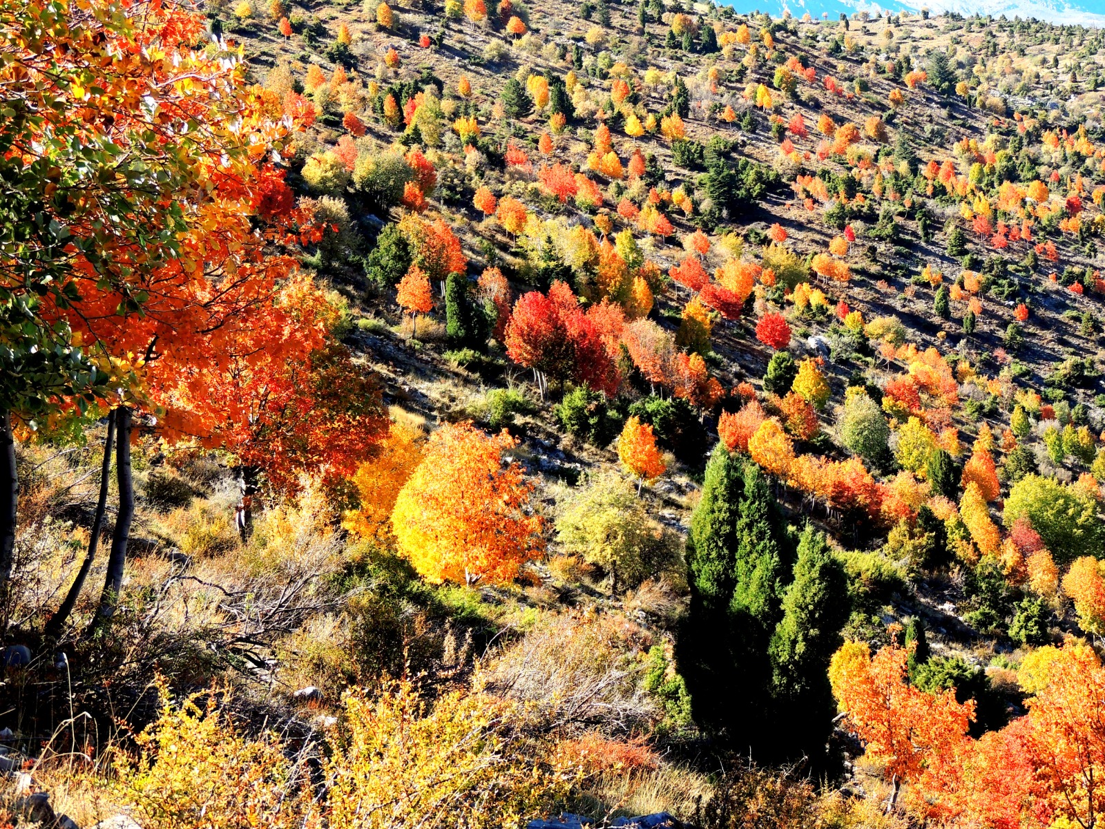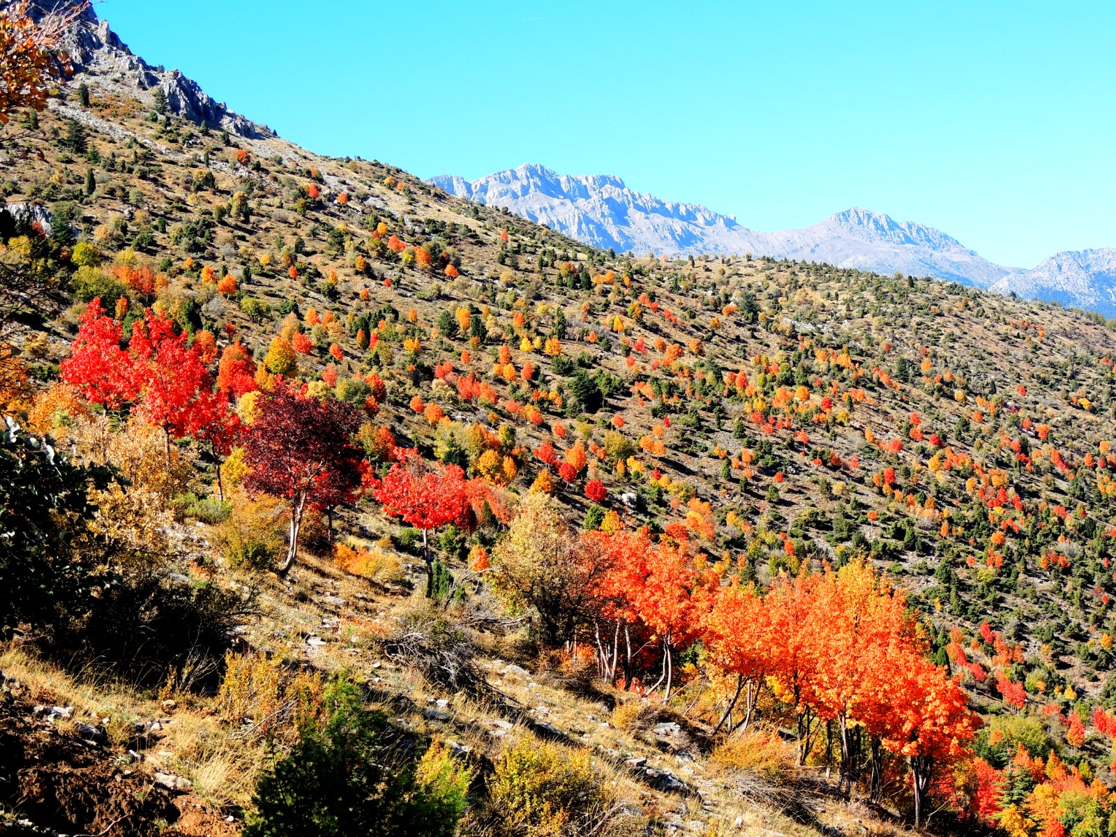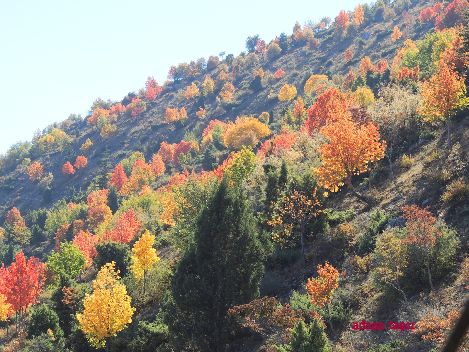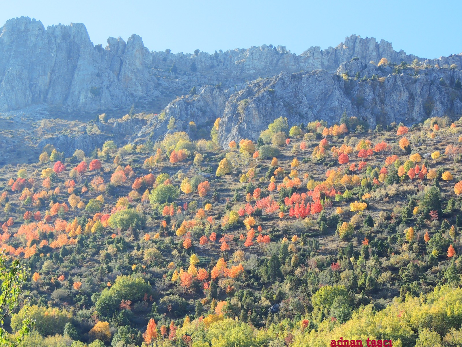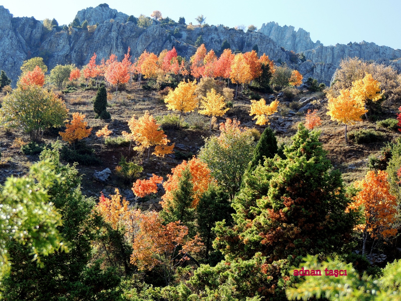 Konya’nın Seydişehir ilçesinde sonbahar mevsimi ile birlikte 2 bin 535 rakımlı Küpe dağı eteklerinde yapraklarının oluşturduğu renkler görsel şova dönüşüyor.