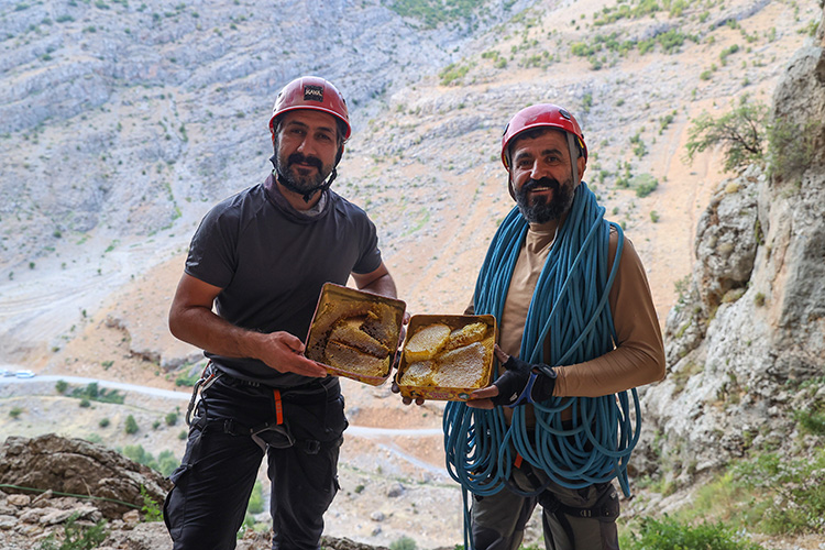 Demez, arıcıların hasat için kendilerinden destek istemesi üzerine bölgeye geldiklerini anlatarak, "Yüksek rakımda ve düz bir kayaya tırmanıyoruz. Çıkılması çok zor bir yerde. Sistemimizi hem aşağıdan hem de yukarıdan kurduk. Önce yukarıdan inip keşif yaptık sonra tırmandık. Her zaman spor olarak bu işi yapıyorduk ama bugün bal çıkarıyoruz. Tehlikeli bir iş. Adrenalin dolu güzel bir etkinlik oldu. Bal için tırmanmak farklı bir duygu." ifadelerini kullandı.
