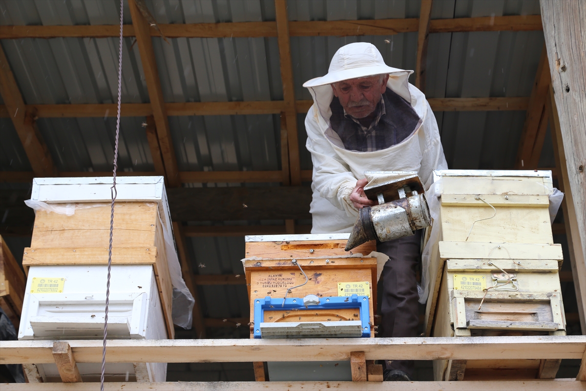 KONYA (AA) - MELİKE KESKİN/RAMAZAN BİLGİLİ - Konya'nın Toros Dağları'nın eteklerine kurulu ilçesi Hadim'de 40 yıldır arıcılık yapan 70 yaşındaki Mustafa Çelik, baldan elde ettiği gelirle ailesinin geçimini sağlıyor.