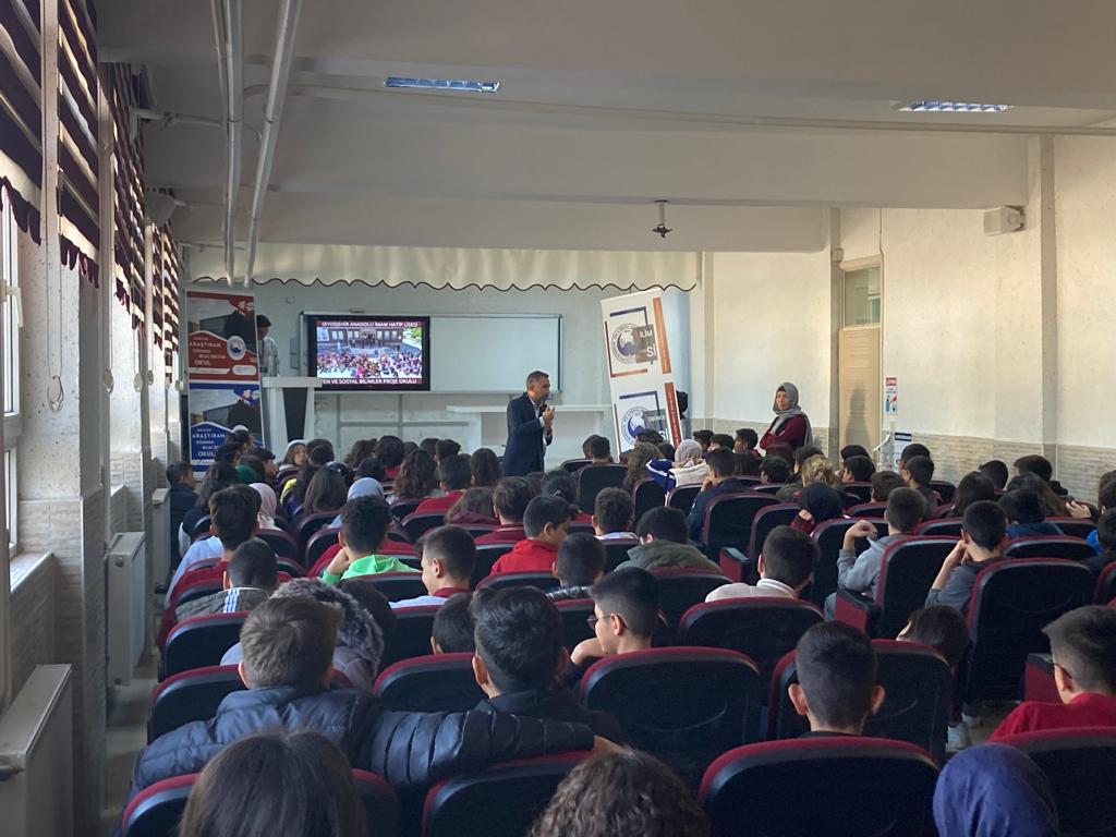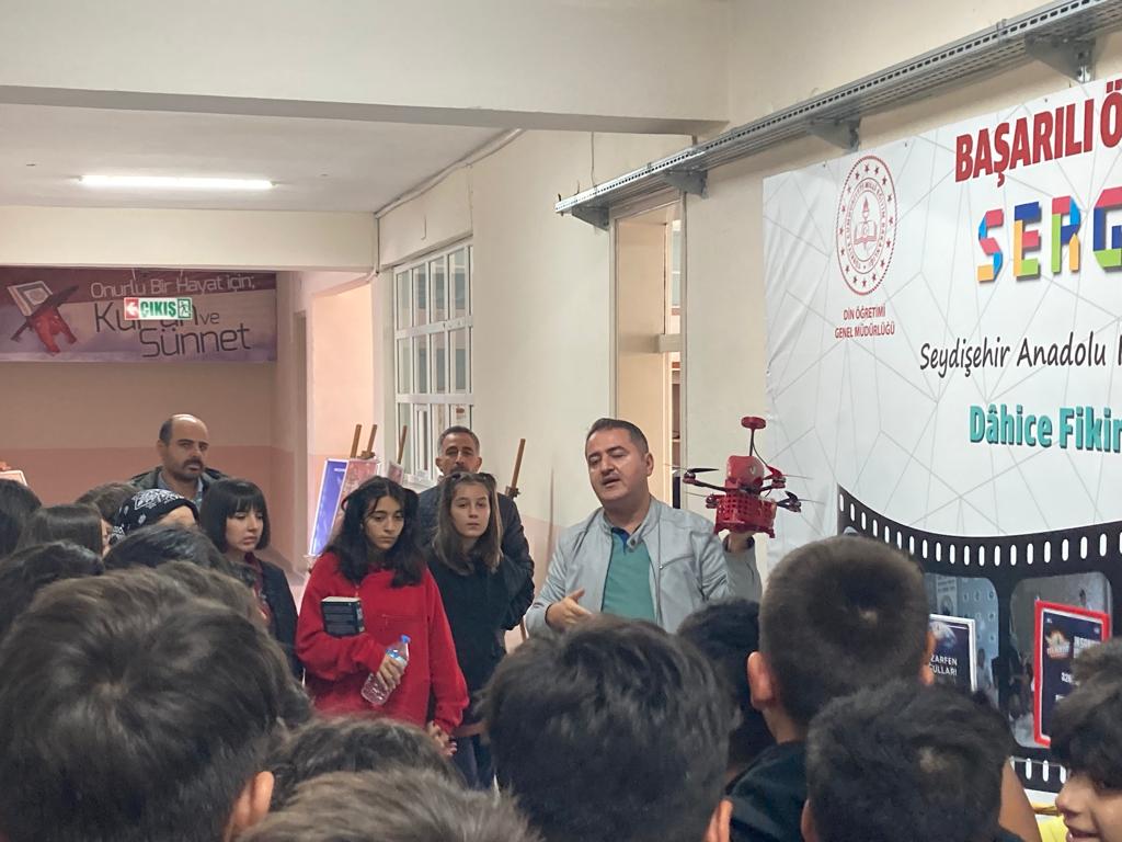 Seydişehir Anadolu İmam Hatip Lisesi Fen ve Sosyal Bilimler Proje Okulu öğrenci ve öğretmenleri bir taraftan TEKNOFEST 2023 için bir çok kategoride okul içi takım başvuru çalışmalarını hızla sürdürürken, diğer taraftan Seydişehir’de başka okullardaki öğrencilerin de TEKNOFEST heyecanını yaşamaları, bilimsel ve teknolojik yarışmalara Seydişehir’deki katılımın artması için ilçe çapında etkinlik düzenlediler. “Tarihe Damga Vuran Bilim İnsanlarımız”, “TEKNOFEST Projelerimiz”, “TÜBİTAK Bilimsel Araştırmalarımız” konu başlıklarından oluşan “Köklerden Göklere” isimli etkinliğe ilçemizde öğrenim gören 1000 ‘den fazla öğrenci katıldı. Sergi ve Söyleşi bölümlerinden oluşan etkinlikte TÜBİTAK Proje hazırlama çalışmaları ve TEKNOFEST yarışma süreçleri hakkında da katılımcılara bilgi verildi.