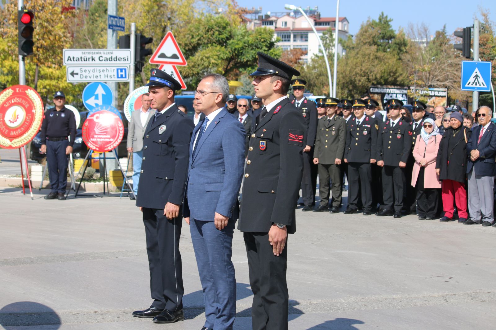 Hükümet Meydanı önündeki Atatürk Anıtı’na çelenk koyma törenine Kaymakam Deniz Pişkin, Belediye Başkanı Mehmet Tutal, Cumhuriyet Başsavcısı Kadir Yalçın Özkubat, Seydişehir Baro Temsilcisi Avukat Muhammed Ugurlu Jandarma Komutanı Salih Yahya Koca, Emniyet Müdürü Cevdet Arıcı, İlçe MEB Müdürü Tahir Kibar, birim amirleri, sivil toplum kuruluşu başkanları, siyasi parti ilçe başkanları, daire amirleri ve vatandaşlar katıldı.