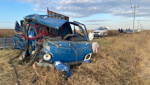 Kazada kamyonetteki biri bebek iki kişi hayatını kaybetti, altı kişi yaralandı.