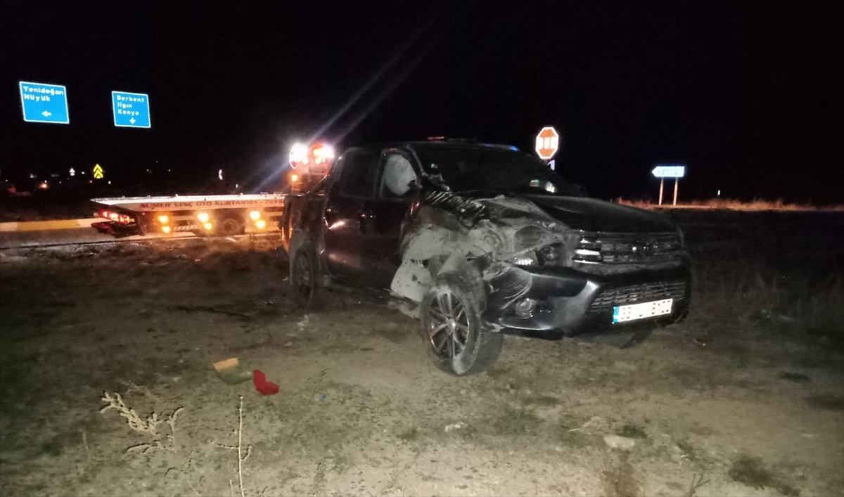 KONYA (AA) - Konya'da kamyonetle otomobilin çarpışması sonucu 8 kişi yaralandı.