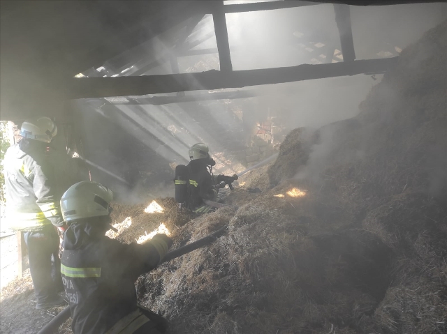 İhbar üzerine bölgeye gelen itfaiye ekiplerince söndürülen yangında, ahır hasar gördü, yaklaşık 20 ton saman yandı.