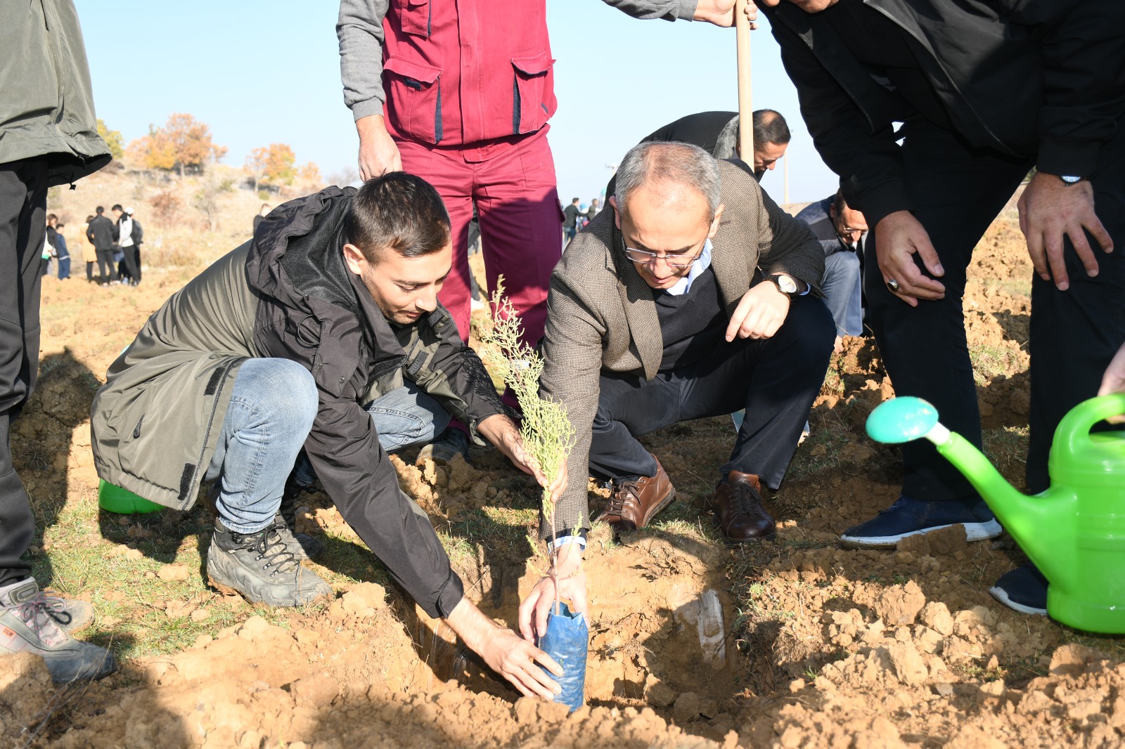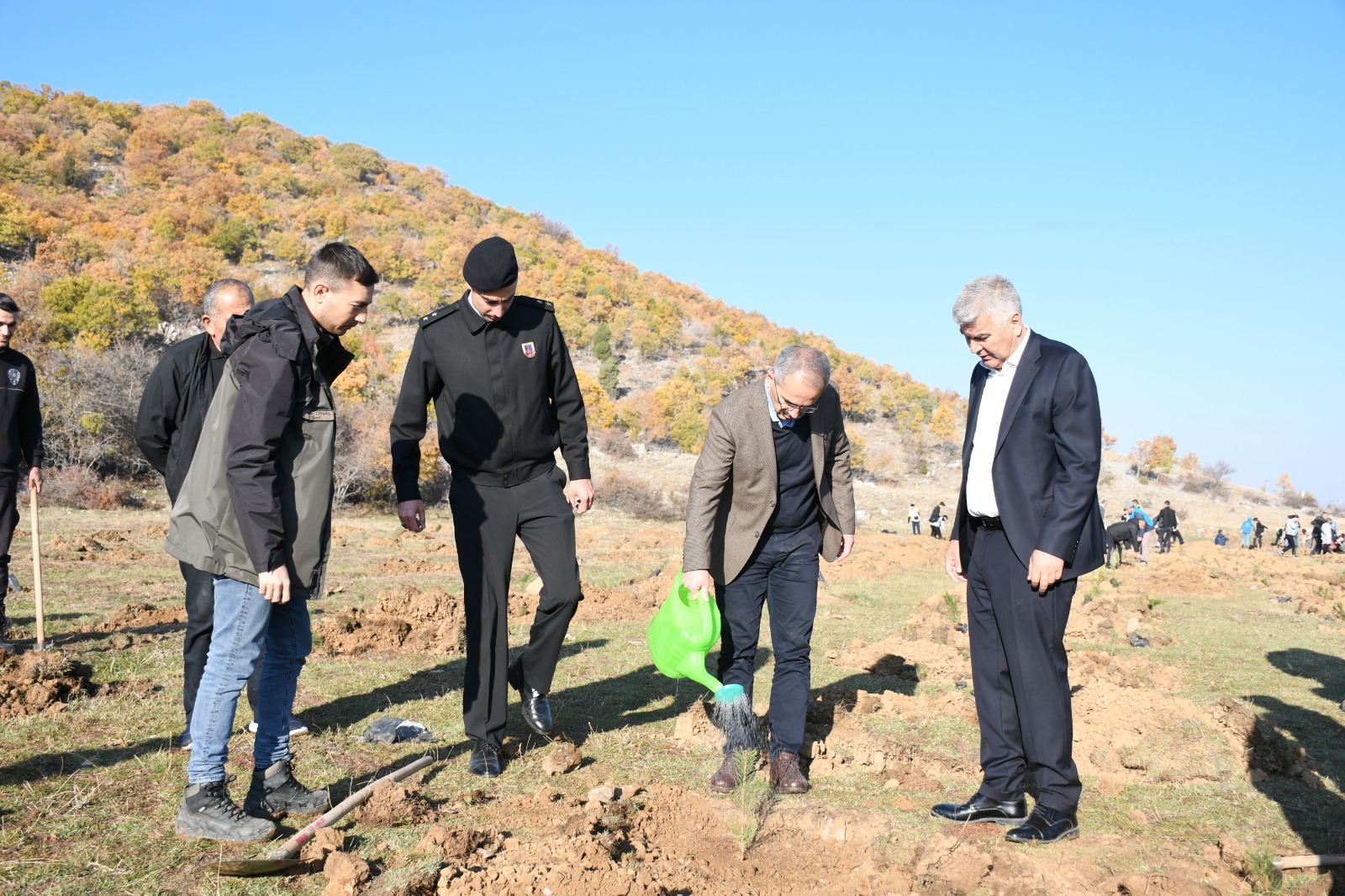Protokol üyeleri, Milli Ağaçlandırma seferberliği çerçevesinde 4000 bin 600 fidan toprakla buluştu.