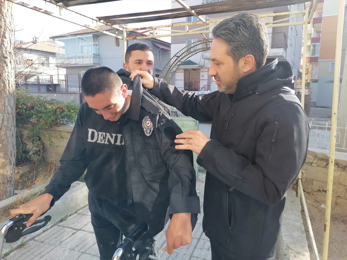 Konya'nın Ereğli ilçesinde yaşayan engelli Abdullah Gökbudak'a polis elbisesi hediye edildi.