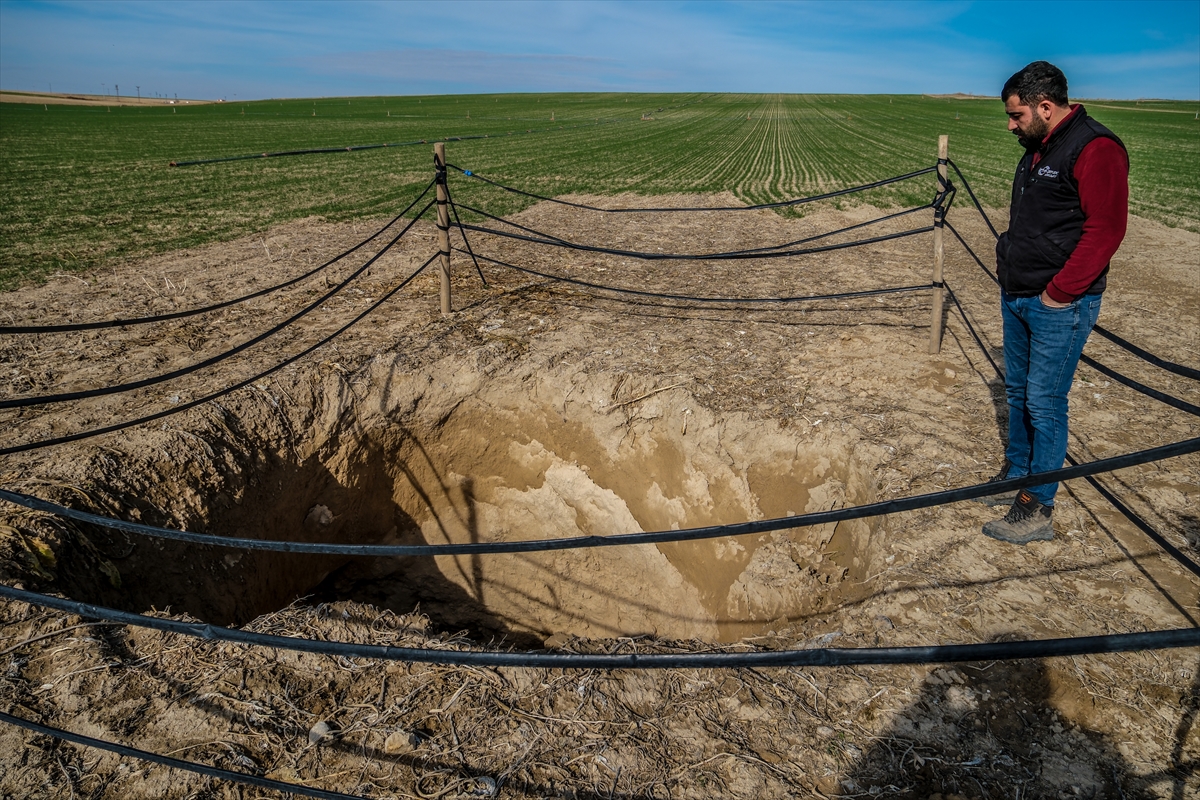 KONYA (AA) - Konya'nın Karapınar ilçesinde tarlasında hasat sırasında obruk oluşan çiftçi yaşadıklarını anlattı.