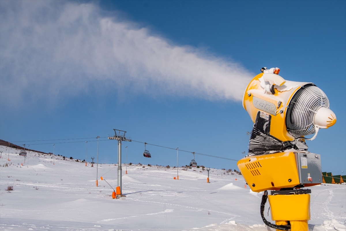 Kar kalınlığının henüz istenilen seviyeye ulaşmadığı kayak merkezinde 15 Aralık'ta başlatılan suni karlama çalışması, hava şartlarının el verdiği dönemlerde devam ediyor.