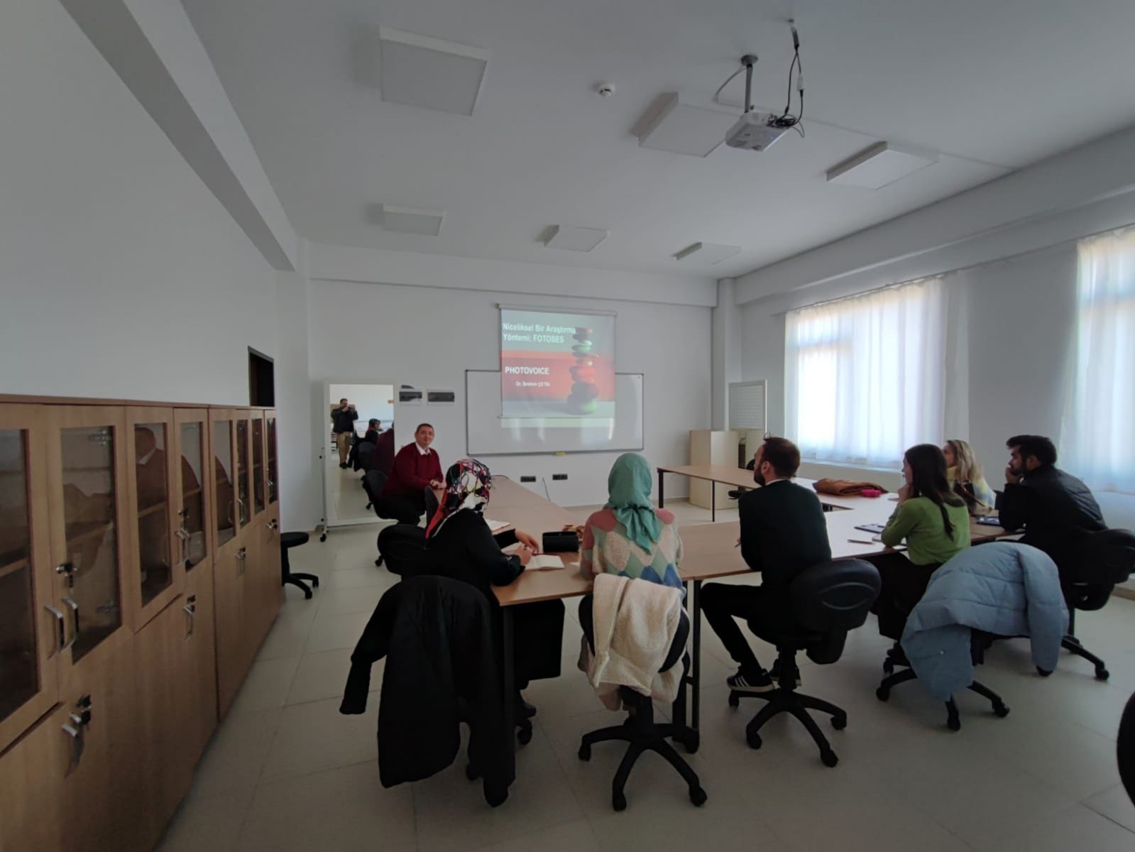 Seydişehir Kâmil Akkanat Sağlık Bilimleri Fakültesi yeni yılın hemen başında faydalı bir etkinliğe ev sahipliği yaptı. Aile ve Sosyal Hizmetler Bakanlığı Seydişehir Sosyal Hizmetler Merkezi Müdürü Muhammet Kiremitçi ve Uzmanlardan oluşan ekibi, saha çalışmalarında yararlanmak amacıyla nitel araştırma ve veri toplama yöntemlerinden olan Photovoice hakkında kapsamlı bir seminer aldı. Photovoice hakkındaki semineri sunan Seydişehir Sağlık Hizmetleri Meslek Yüksekokul Müdürü Doktor Öğretim Üyesi İbrahim Çetin, ülkemizde henüz yeni tanınmaya başlayan bu araştırma metodolojisinin özellikle sosyal hizmetler alanında etkili bir şekilde kullanılabileceğini ve Seydişehir Sosyal Hizmet Merkezinin yenilikçi ve dinamik yapısıyla bu konuda öncü olabileceğini ifade etti. Toplantıya Fakültenin Halk Sağlığı Hemşireliği Anabilim Dalı Başkanı Doktor Öğretim Üyesi Serap Batı’da katıldı. Her iki kurumun, işbirliği ile hizmet üretmeye yönelik çalışmaları devam ediyor.