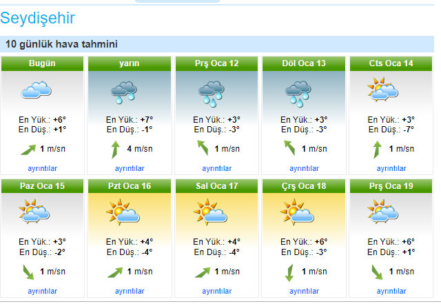 Konya'da bugün ve 10 Ocak Salı günü hava parçalı az bulutlu, gece ve sabah saatlerinde puslu ve sis etkili olacak. Hava sıcaklığının gece saatlerinde -1 ila -4 derece olması, salı günü öğle saatlerinde ise 6 ila 10 dereceye yükselmesi bekleniyor. Akşam ve gece saatlerinde beklenen hava sıcaklığı ise beklenen yağışın da etkisi ile 3 ila 5 derece aralığında olacak.