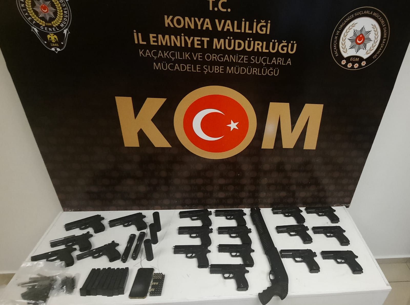 Konya’da ekiplerin durumundan şüphelenerek durdurduğu bir araçtan adeta cephanelik çıktı. Araç içerisinde arama yapan KOM ekipleri onlarca ruhsatsız silah ele geçirdi. Beyşehir Emniyeti ile ortak yürütülen çalışmalarda aynı şüpheliye ait iş yerine operasyon düzenleyen ekipler çok sayıda silah ve silah parçası ele geçirdi.