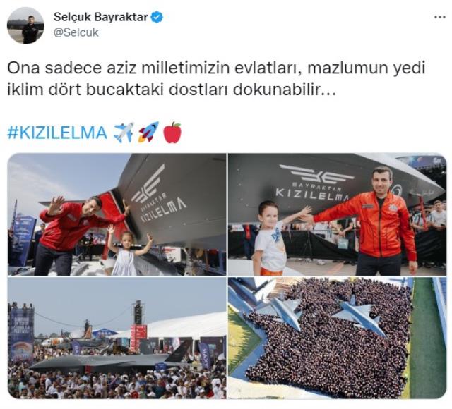 Tartışma yaratan bu çıkışa Baykar Yönetim Kurulu Başkanı Selçuk Bayraktar'dan yanıt geldi. Bayraktar sosyal medya hesabından Silahlı İnsansız Hava Aracı Kızılelma'ya dokunan çocukların fotoğraflarını paylaştı. Bayraktar Twitter'dan "Ona sadece aziz milletimizin evlatları, mazlumun yedi iklim dört bucaktaki dostları dokunabilir..." ifadelerini kullandı.