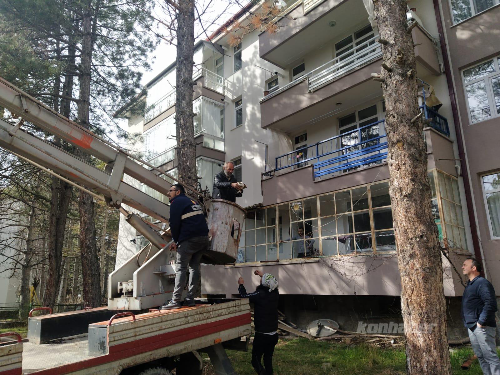 Alaylar 1 Mahallesi Lojmanlar Cami arkasında bulunan 8 metre yüksekliğindeki çam ağacına tırmanan kedinin sesini duyan apartman sakinleri, durumu Seydişehir Belediyesi'ne bildirdi.